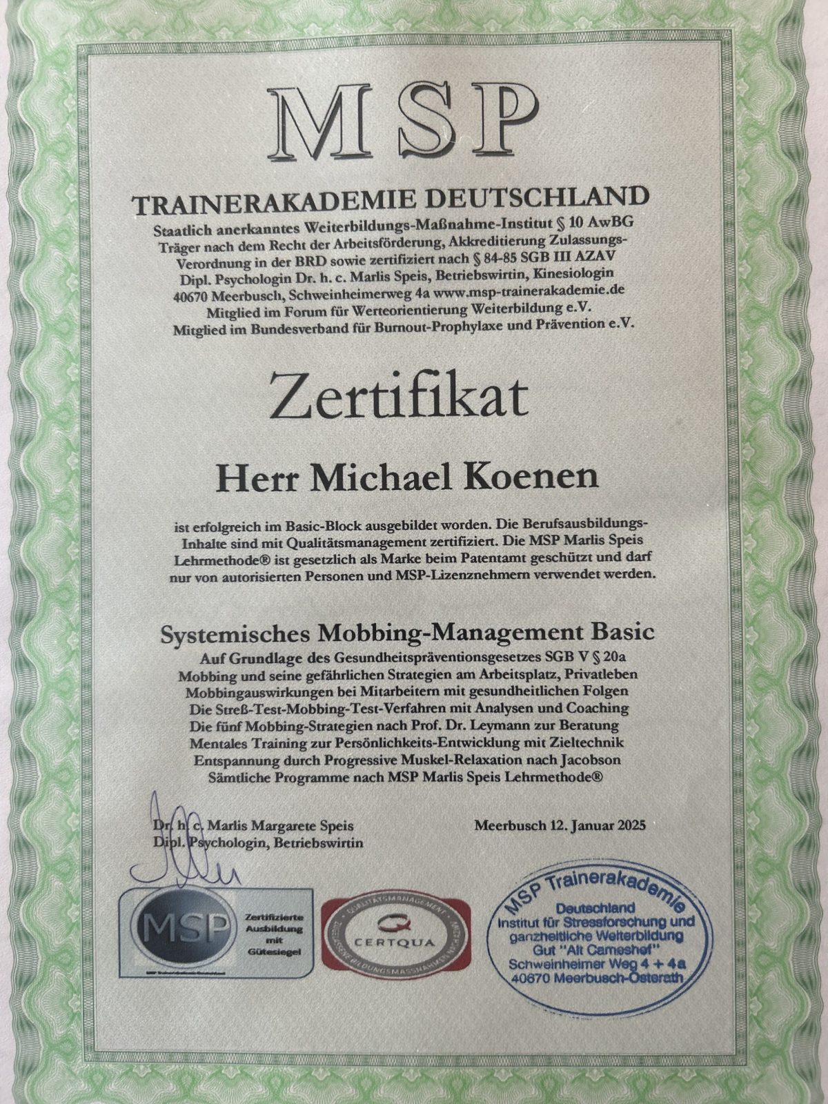 - Auf Basis unserer Ausbildung nach dem Gesundheitspräventionsgesetz SGB V § 20a ist das Projekt auch nach diesem Gesetz bis zu 80% förderbar, https://www.bug-nrw.de/landesprogramm